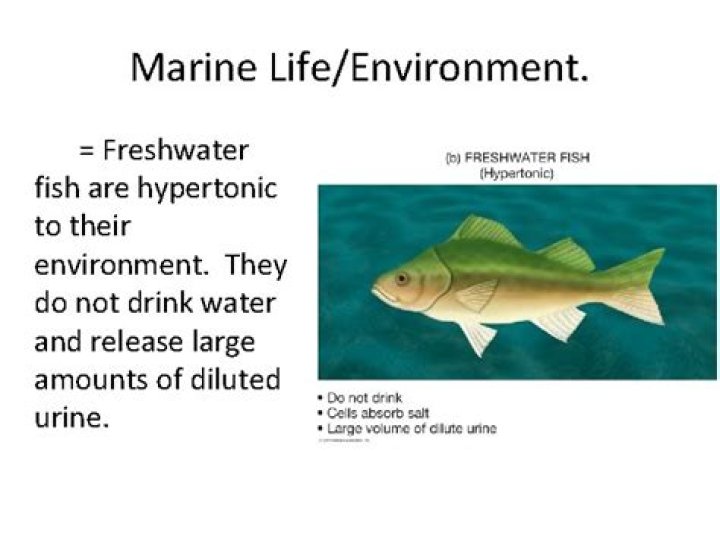 Because freshwater is hypotonic to the fishes living in it, water is continually entering their bodies through their gills, skin, or their mouths when they eat. To balance the amount of water in their bodies, all they have to do is urinate frequently.