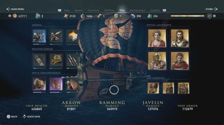 Once you’ve got enough resources, press the Options button to bring up your menu and select the Ship tab. From here, you can use your cursor to hover over the section that you want to upgrade. For instance, you can increase the size of your hull, arrow charges, javelin charges, as well as arrow and javelin damage.