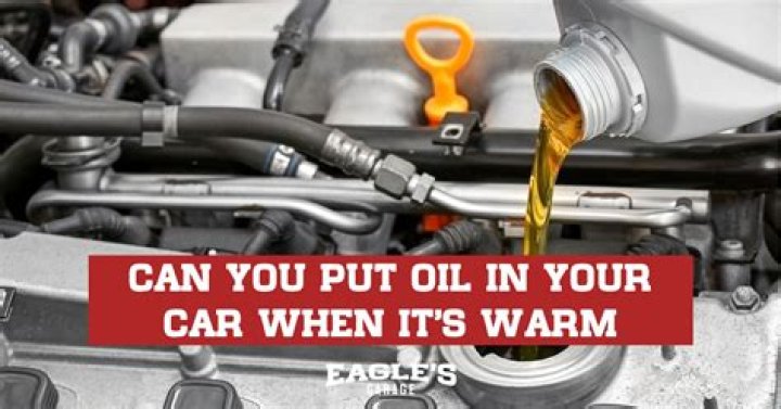 You can put oil in your car when the engine is hot. Check the oil level after the engine has cooled, but it is safe to add oil to your car if it is warm or slightly hot, provided it has been turned off for several minutes. Be sure to avoid overfilling the oil past the “max” line on the dipstick.