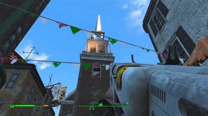 The Road to Freedom quest triggers in the plaza in Goodneighbor, and tasks you with following the Freedom Trail. After triggering the quest, simply walk to the Old North Church at this location. Within you’ll spot a door under a painting of a lantern. More Ghouls await in the tunnels.