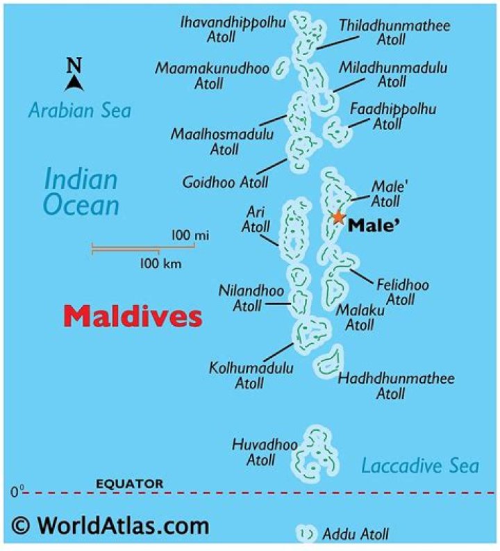 Maldives, in full Republic of Maldives, also called Maldive Islands, independent island country in the north-central Indian Ocean. It consists of a chain of about 1,200 small coral islands and sandbanks (some 200 of which are inhabited), grouped in clusters, or atolls.