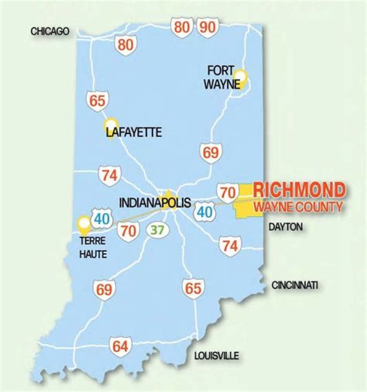 Richmond is a town in Indiana with a population of 35,539. Richmond is in Wayne County. Living in Richmond offers residents a dense suburban feel and most residents own their homes. In Richmond there are a lot of parks.