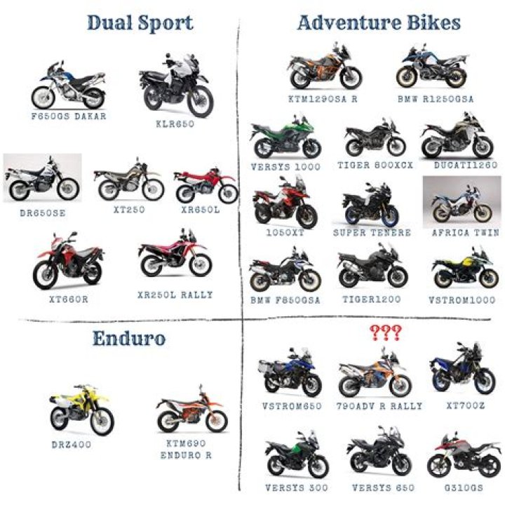 Affordable Dual Sport Motorcycles Suzuki V-Strom 650. The poor man’s GS? Kawasaki KLR650. Three decades of do-it-all on- and off-road performance and the KLR still hangs tough. Honda XR650L. From Baja to Boston, Honda’s legendary XR650L dual sport is ready to go. Suzuki DR-Z400S.