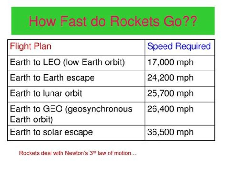 How fast can conventional rockets go? Flight Plan speed required Earth to LEO (low Earth orbit) 17,000 mph Earth to Earth escape 24,200 mph Earth to lunar orbit 25,700 mph Earth to GEO (geosynchronous Earth orbit) 26,400 mph.