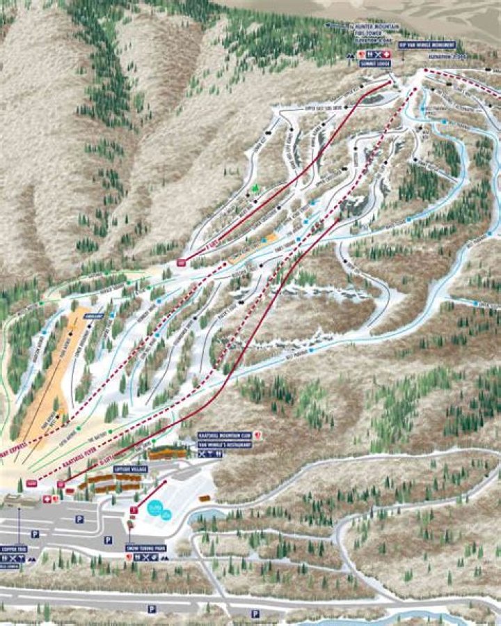 Here’s how they size up. Hunter includes 240 acres for 58 trails, including 4 terrain parks. Windham lists 269 acres for its 54 trails and 6 terrain parks. Its vertical drop is also 1,600-feet.