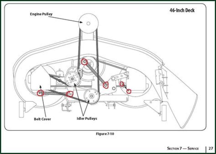 There are two belts on most riding lawnmowers. One belt connects the transmission of the lawn tractor to the driveshaft pulley and the other belt connects the mower deck to the driveshaft pulley.