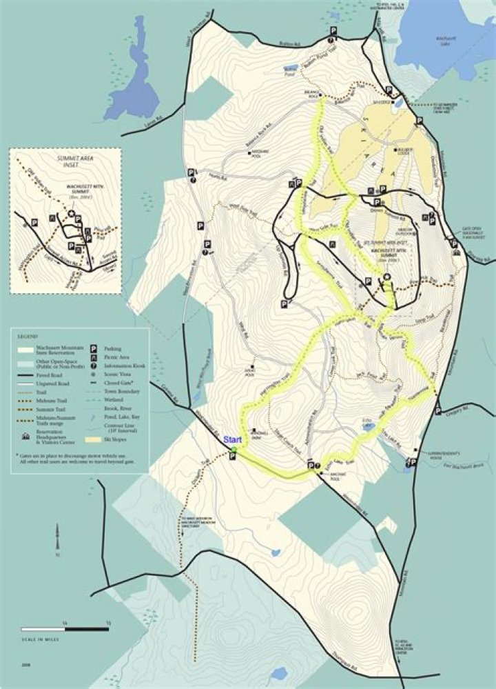 If you are planning to hike the mountain, please see map, and use one of the 7 alternative parking areas: Wachusett Mountain State Reservation Visitor’s Center. Mountain House Trail. Echo Lake Road (near Mountainside Café) Echo Lake Trail. West Side Trail. North Road. Bolton Pond Trail (on Bolton Road)