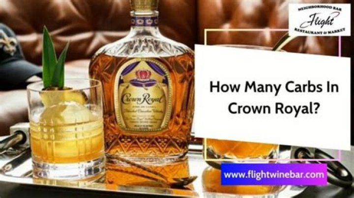 Crown Royal (1 serving) contains 0g total carbs, 0g net carbs, 0g fat, 0g protein, and 100 calories. 0 g. 0 g. 0 g. 0 g. 0 g.
