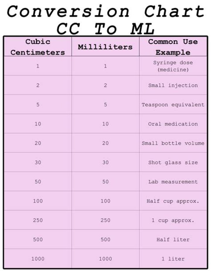 How Many Cc Is In A Ml
