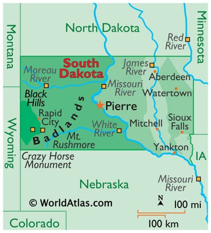 This distance is equal to 800.53 miles, and 695.18 nautical miles. The distance line on map shows distance from South Dakota to North Border between two cities.