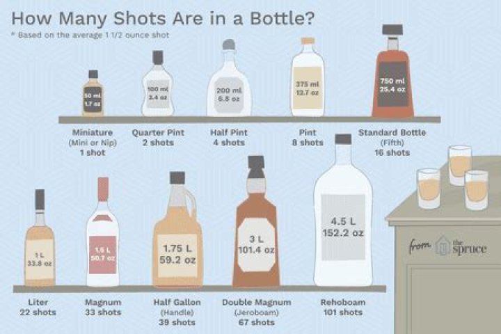 Liquor Shots per Bottle How Many Shots Are in a Bottle? Bottle Milliliters Ounces Liter 1 L 33.8 oz Magnum 1.5 L 50.7 oz Half Gallon (aka Handle) 1.75 L 59.2 oz.