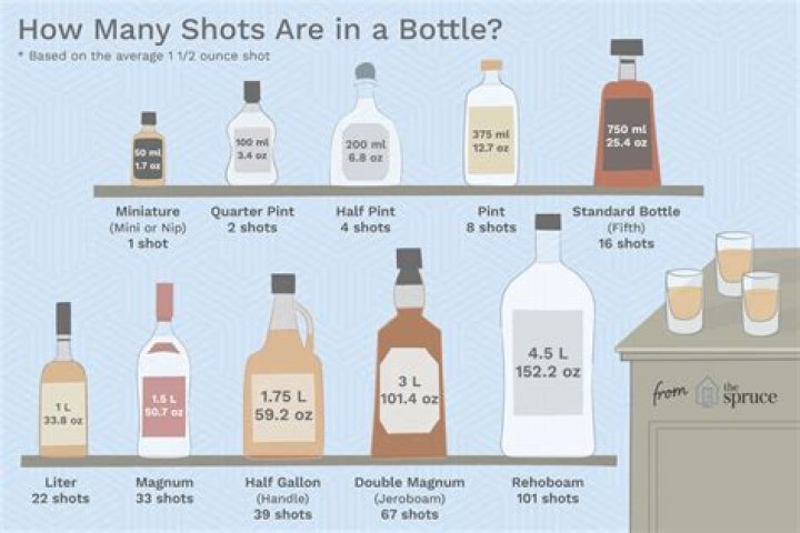 Common Liquor Bottles Sizes Chart Name Shots Ounces Pint 10.5 16 Fifth 17 25.36 Liter 22 33.82 Handle 39 59.18.