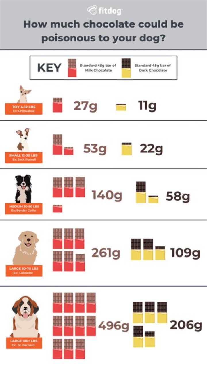For supermarket products, around 90g dark chocolate can kill a 5kg dog, or 200g of milk chocolate. The toxic amount will be lower for high-quality products like Lindt, Haighs or Ghirardelli.