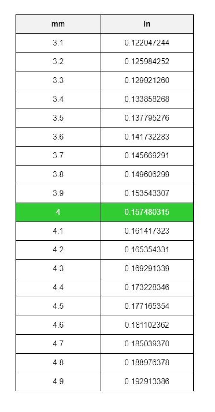 What does 4 mm look like in inches?