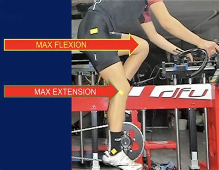 Purpose: Bike-fitting methods based on knee kinematics have been proposed to determine optimal saddle height. The Holmes method recommends that knee angle be between 25° and 35° when the pedal is at bottom dead centre in static. Other authors advocate knee angle of 30-40° during maximum knee extension while pedalling.