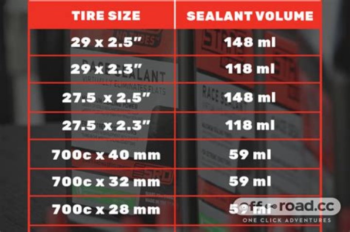 According to Esherick, two ounces is the right amount of sealant for topping off gravel tires all the way up to 2.5-inch mountain bike tires. “If you’re up in the 2.5- to 2.6-inch range, you might want three ounces, and 2.7- to 2.8-inch tires require about four ounces,” Esherick says.