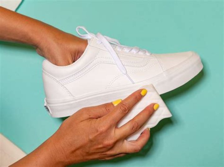 Here’s how you do it: Mix together 1 tablespoon warm water, 1 tablespoon vinegar and 1 tablespoon baking soda. Mix until you create a paste like consistency. Use an old toothbrush to scrub the shoes in a circular motion. Once you have scrubbed the entire shoe, rinse with warm water to remove the paste mixture.