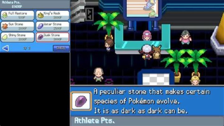 In Pokémon HeartGold and SoulSilver, the player can purchase Evolution stones from the Pokéathlon Dome’s Athlete Shop. The specific stones available depend on the day of the week. In Pokémon Black, White, Black 2, and White, the player can find Evolution stones in dust clouds.