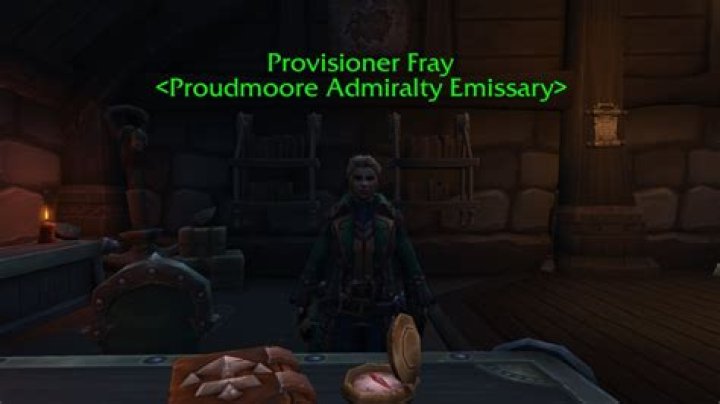 Provisioner Fray is Proudmoore Admiralty emissary an can be found in Boralus Harbor. She stands the deck at bottom level of Harbormaster’s Office, where is Scouting map can be found.