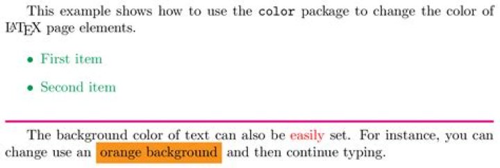 There are two new commands which have been used in the example. \textcolor{blue}{easily}: This command will change the colour of the inline text. It takes two parameters : the colour and the text whose colour has to be changed. \colorbox{Green}{also}: This command will change the background colour of the text passed.