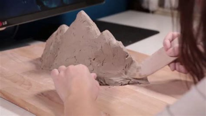Place a mound of clay onto the plywood platform and begin to shape it into a cone-shaped mountain with your hands. Add more clay to make one mountain the desired size or make several smaller mountains on the platform as a mountain range. Use your fingers to begin to make finer details in the clay.