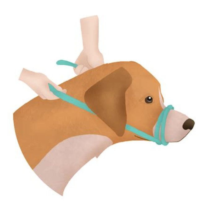 If you are in an emergency situation and you need to cover your dog’s mouth quickly, cut a long strip of gauze and tie a knot in the middle of it. Wrap the loop around your dog’s nose and then tie it behind their head quickly so they can’t open their mouth.