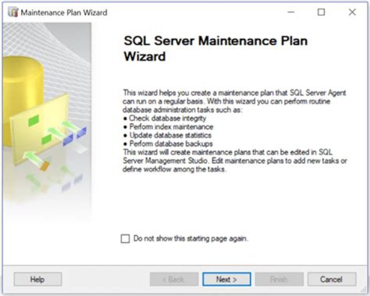 To create a database maintenance plan, open SQL Server Management Studio (SSMS) and connect to the SQL Server instance. Once connected to the instance, expand Management Right-click on the Maintenance Plans Select New Maintenance Plan. In the New Maintenance Plan dialog box, specify the name of the maintenance plan.