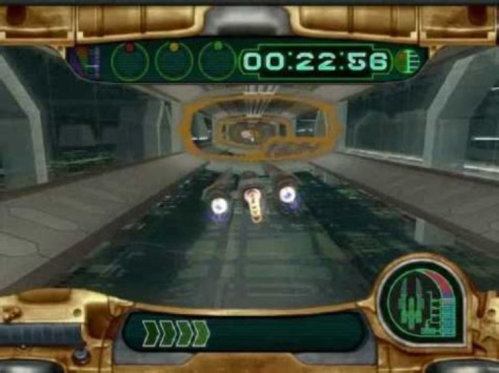 Steer over the acceleration pads to receive speed boosts, and each time the shift indicator tops out, press ENTER or MOUSE Button 1 again to shift to more powerful thrusters. The latest addition to the swoop bike is the repulsor boost. Press the SPACEBAR to induce a “jump” that allows you to clear some obstacles.