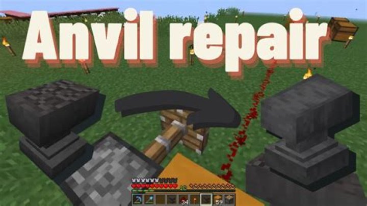 To use an anvil to repair an item, place the item you want to repair in the left-most slot and another of the item in the right slot. If you are repairing an iron pickaxe, you can place another iron pickaxe to repair it. If the tool is iron or better you can use the same type of material to repair it.