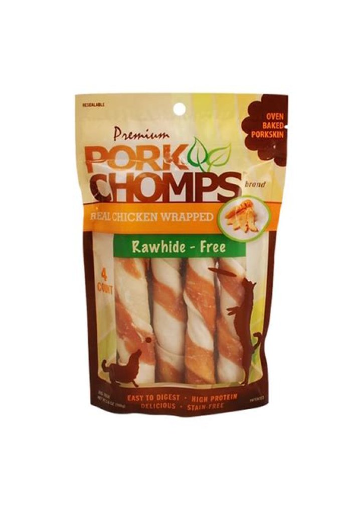 Description. Rawhide-free, great-tasting and naturally delicious, it’s no wonder premium pork chomps have earned the loyalty of so many dogs! pork chomps are made of oven-baked pork skin, which is easily digested.