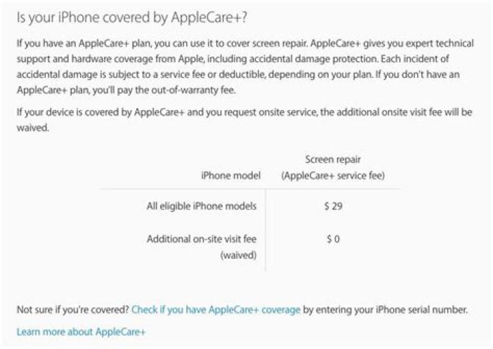 AppleCare+ AppleCare+ for iPhone includes up to two incidents of accidental damage protection every 12 months. Each incident is subject to the service fees listed below, plus applicable tax. In addition, you’ll get Express Replacement Service4 and 24/7 priority access to Apple experts by chat or phone.