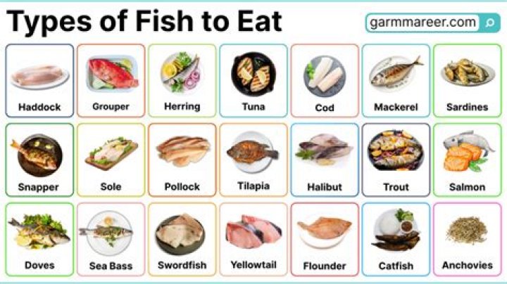 Alaskan salmon. There’s a debate about whether wild salmon or farmed salmon is the better option. Cod. This flaky white fish is a great source of phosphorus, niacin, and vitamin B-12. Herring. A fatty fish similar to sardines, herring is especially good smoked. Mahi-mahi. Mackerel. Perch. Rainbow trout. Sardines.