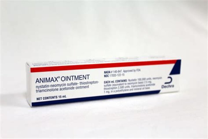 ANIMAX® Ointment (nystatin-neomycin sulfate-thiostrepton-triamcinolone acetonide) ANIMAX Ointment is particularly useful in the treatment of acute and chronic otitis of varied etiologies, in interdigital cysts in cats and dogs and in anal gland infections in dogs.