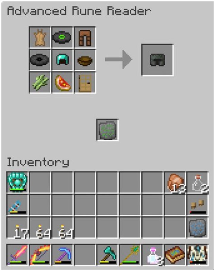 When you use the Advanced Rune Reader you’ll clearly see the spot where you place your runes. Doing so will reveal the recipe that corresponds to that rune. This means you’ll need to go out and farm a bunch of runes to find the correct ones.