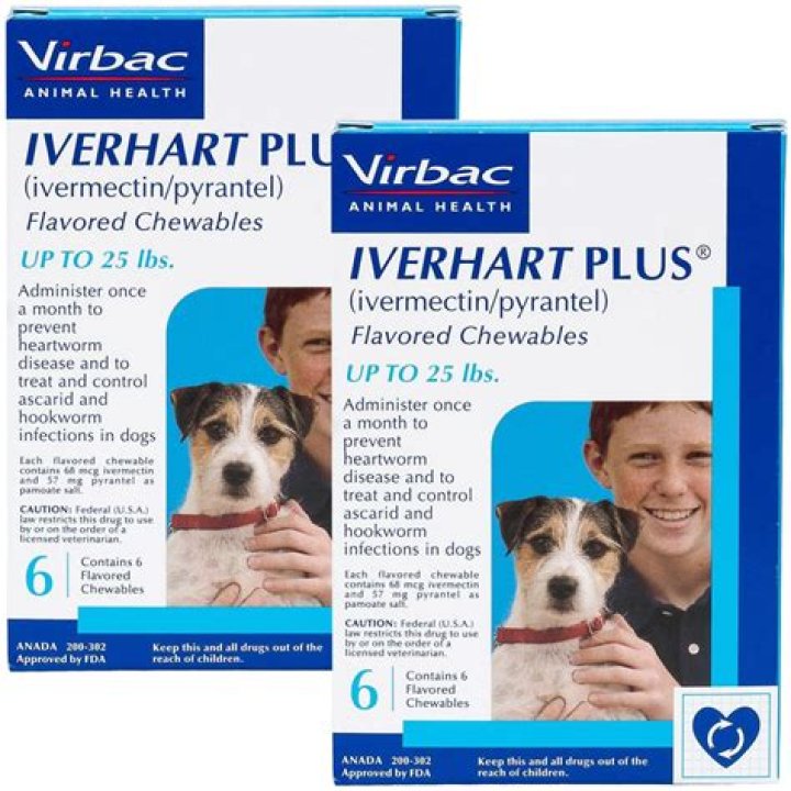 Just one IVERHART PLUS® (ivermectin/pyrantel) Flavored Chewables given monthly protects your dog from heartworm disease and treats and controls roundworms and hookworms. This flavored chewable is tasty and safe even in puppies as young as 6 weeks.