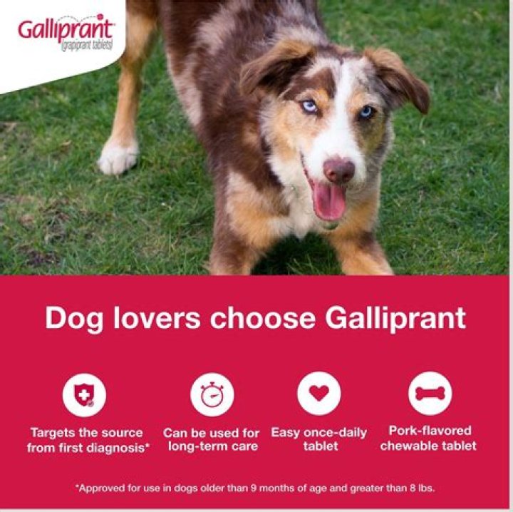 Targets Osteoarthritis Pain from First Diagnosis Galliprant is approved for use in dogs at least 9 months of age and greater than 8 pounds, so you and your veterinarian can intervene early – as soon as your dog is in pain.