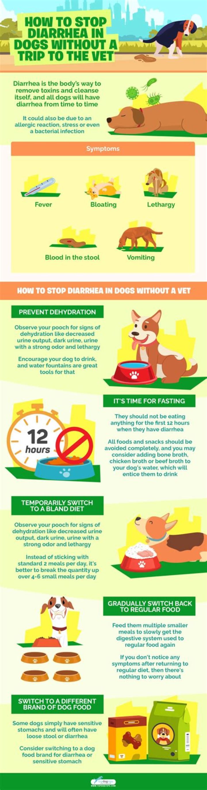 What stops diarrhea in dogs quickly?
