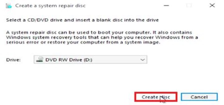 How do you create a system repair disc in Windows 10? Insert a blank (unformatted) CD/DVD to your computer, get into “Control Panel”-> “Backup and Restore” , and then, click “Create a system repair disc” on the left. Then, you will get into the Create a system repair disc window.
