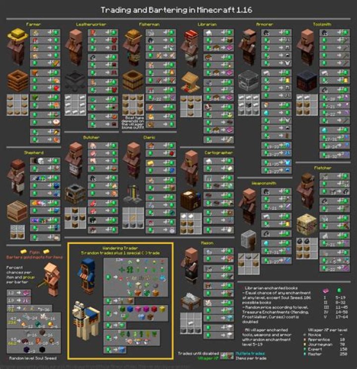 The wandering trader is a passive mob that randomly spawns near the player. It can trade, making natural items more available, less dangerous to obtain, and in some cases, renewable.