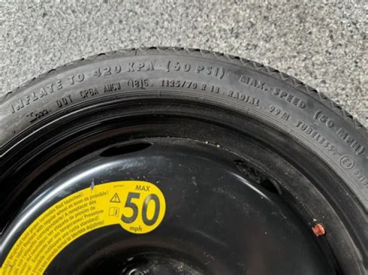 Most “donut” spares are not rated for more than 55 MPH. Exceeding that speed can overheat the tire and cause a blowout. They are terrible performers in traction and braking, and shouldn’t be driven in rain or snow. The distance rating can be 50–100 miles depending on the size of of spare and the model of vehicle.