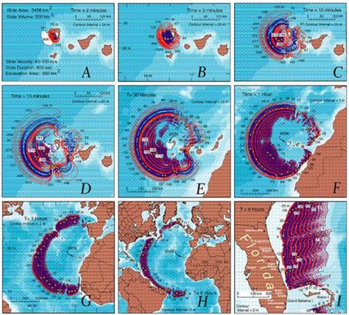 However, while there is no indication it could happen soon (but could), there are scientifically sound reasons for concern that at some point a mega-tsunami could engulf the entire East Coast with a wave almost 200 feet high sweeping everything and everybody up to 20 miles inland.