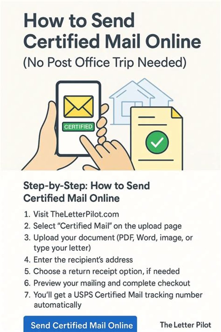 Certified mail is a service provided by the USPS that provides the sender with a mailing receipt and that confirms their mail was delivered or that a delivery attempt was made. Sending Certified Mail online is easy and only requires access to a computer and the internet.
