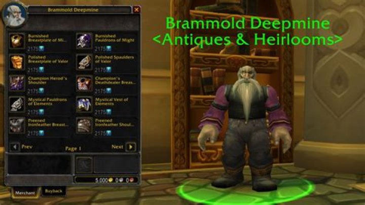 The following vendors sell heirloom shoulders, chests, trinkets, necklaces, and weapons, and both sets of the heirloom upgrade tokens for gold: Krom Stoutarm: The Library, Hall of Explorers, Ironforge. Estelle Gendry: Gates of Orgrimmar, Orgrimmar or Rogues’ Quarter, Undercity.