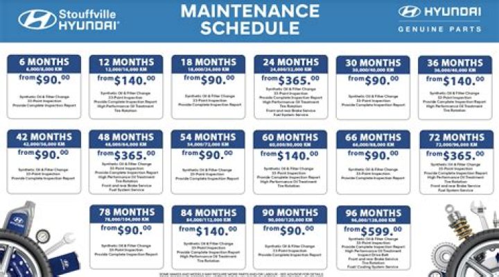 Hyundai’s maintenance plan can cover scheduled services up to seven years or 105,000 miles, whichever comes first.Average Hyundai Maintenance Cost. Hyundai Model Average Annual Hyundai Maintenance Cost Hyundai Tucson $426 Hyundai Elantra $452 Hyundai Sonata $458 Hyundai Veloster $493.