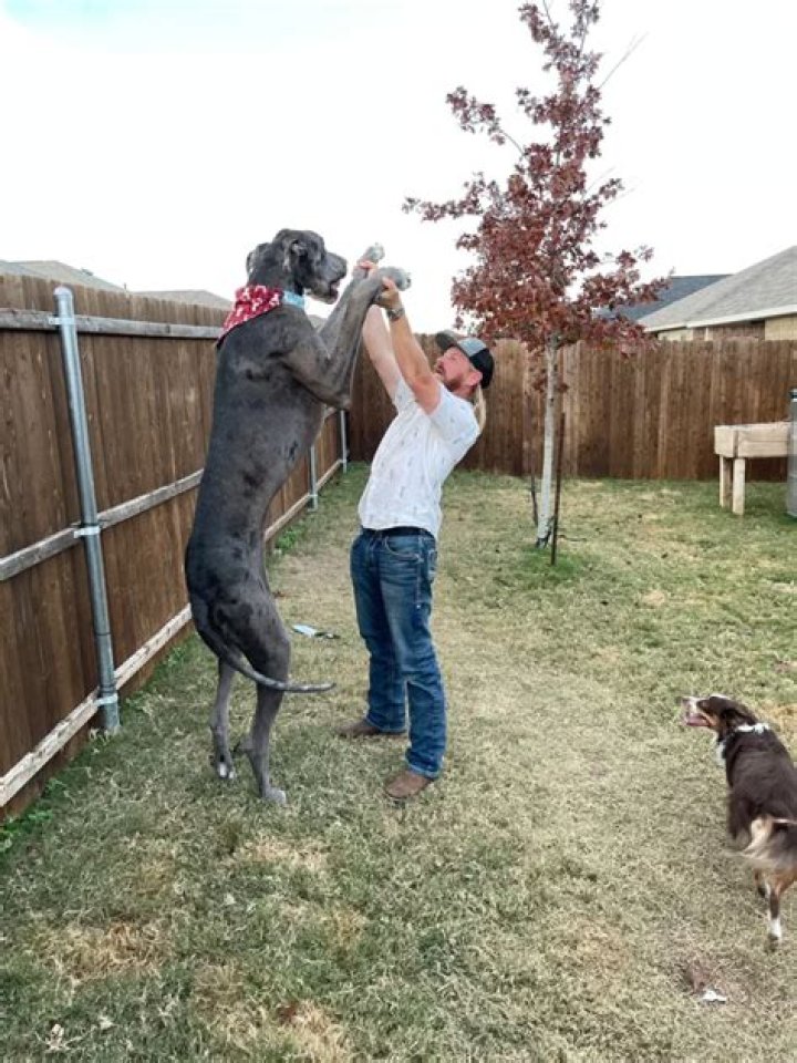 Standing at 104 centimeters tall — or 3 feet and 4 inches — from his paws to his withers (the spot in between a dog’s shoulder blades, which is the official measuring point for all Guinness world record holding dogs), Atlas has about 3 centimeters on the current living world-record holder, who is 101 centimeters tall.