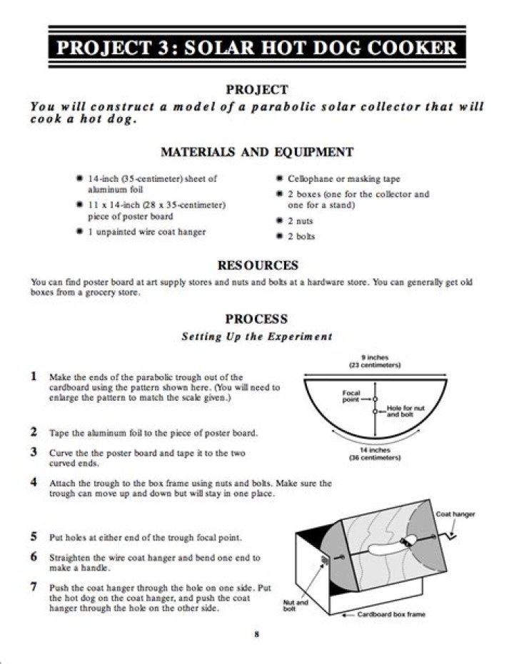 How to Make a Solar Hot Dog Cooker Prep Time 10 minutes. Active Time 30 minutes. Additional Time 30 minutes. Total Time 1 hour 10 minutes. Difficulty Medium.