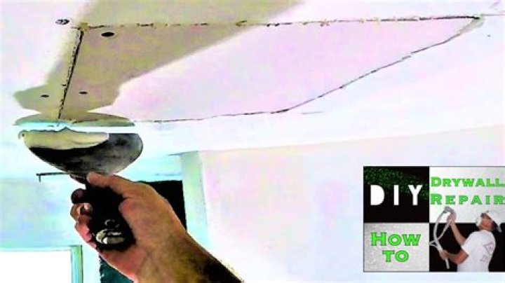 Less Than 1 Inch Wide Fill the hole with vinyl spackling, using a putty knife. Wipe excess spackling with a clean cloth. Sand the patched hole smooth to the surface of the ceiling with a fine-grit sanding block. Wipe the sanding dust with a clean cloth. Apply ceiling paint to the patched hole with a small paintbrush.