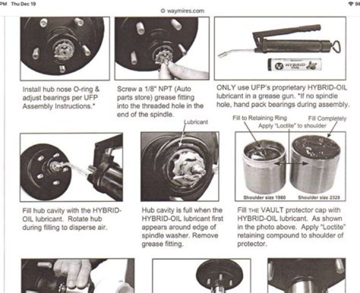 1 and 2), pump a ring of grease into the entire circumference of the wheel hub and coat the hub cap inner wall. The housing should only be half full of grease. Too much grease causes churning and higher temperatures. Semi-fluid grease must be used with a vented hub cap.