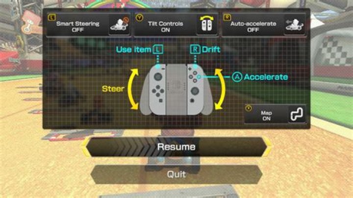 If you want to turn Tilt Controls off during a race, go into the menu by pressing + and then either Y or Left/B if you’re using a single Joy-Con. All controllers can use the Tilt Controls set-up, allowing you to steer your kart by tilting your controller.