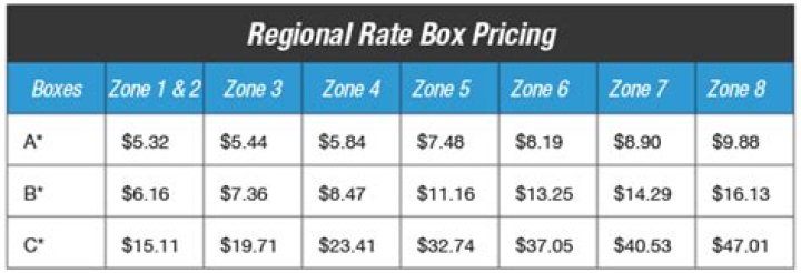 2020 Regional Rate & Zone Chart USPS Regional Rate Box A 2019 Commercial Rates Price Increase Zones 1 & 2 $7.65 $0.03 Zone 3 $7.85 $0.07 Zone 4 $8.12 $0.09 Zone 5 $8.76 $0.16.